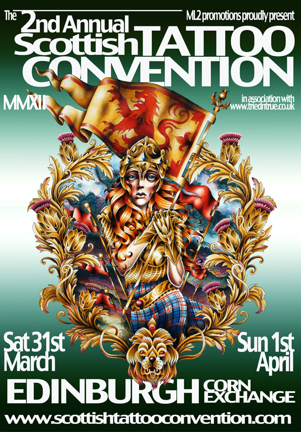 Kaye will be working at this year’s Scottish Tattoo Convention on Saturday the 31st of March and Sunday the 1st of April.